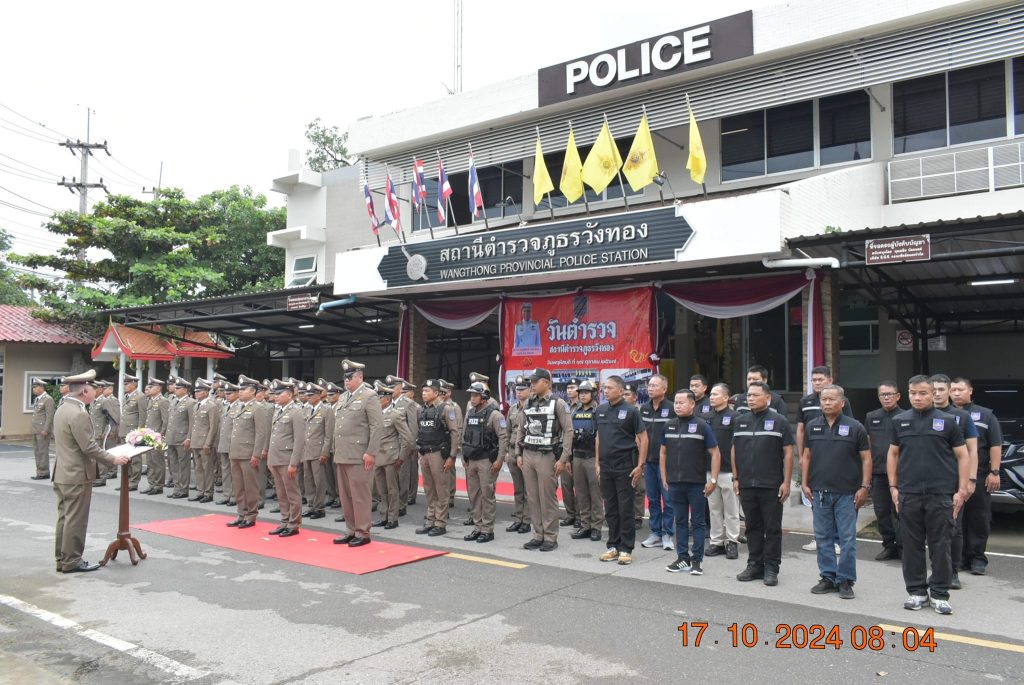 วันนี้ (17 ต.ค. 67) เวลา 08:30 น. พ.ต.อ.มนต์ศักดิ์ แก้วอ่อน ผกก.สภ.วังทอง นำข้าราชการตำรวจสถานีตำรวจภูธรวังทอง ร่วมเข้าแถวเคารพธงชาติ พิธีอ่านสารของ พล.ต.อ.กิตติ์รัฐ พันธุ์เพ็ชร์ ผบ.ตร. เนื่องในวันตำรวจ ประจำปี 2567
