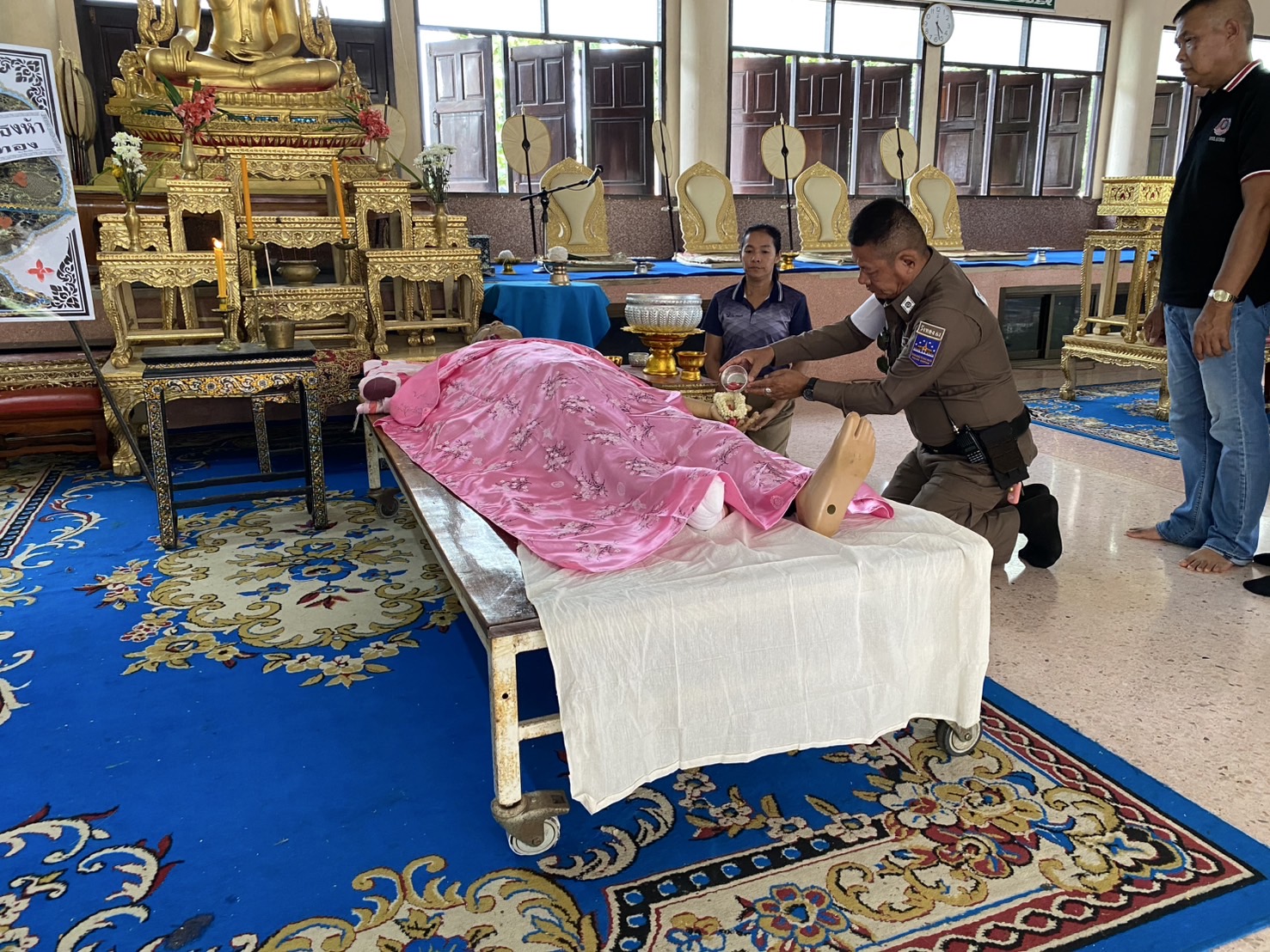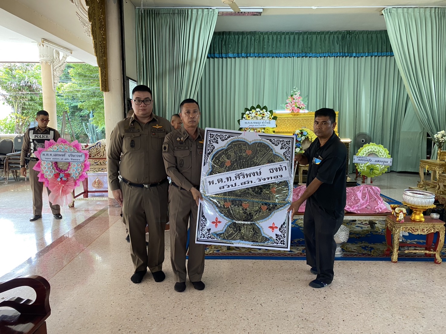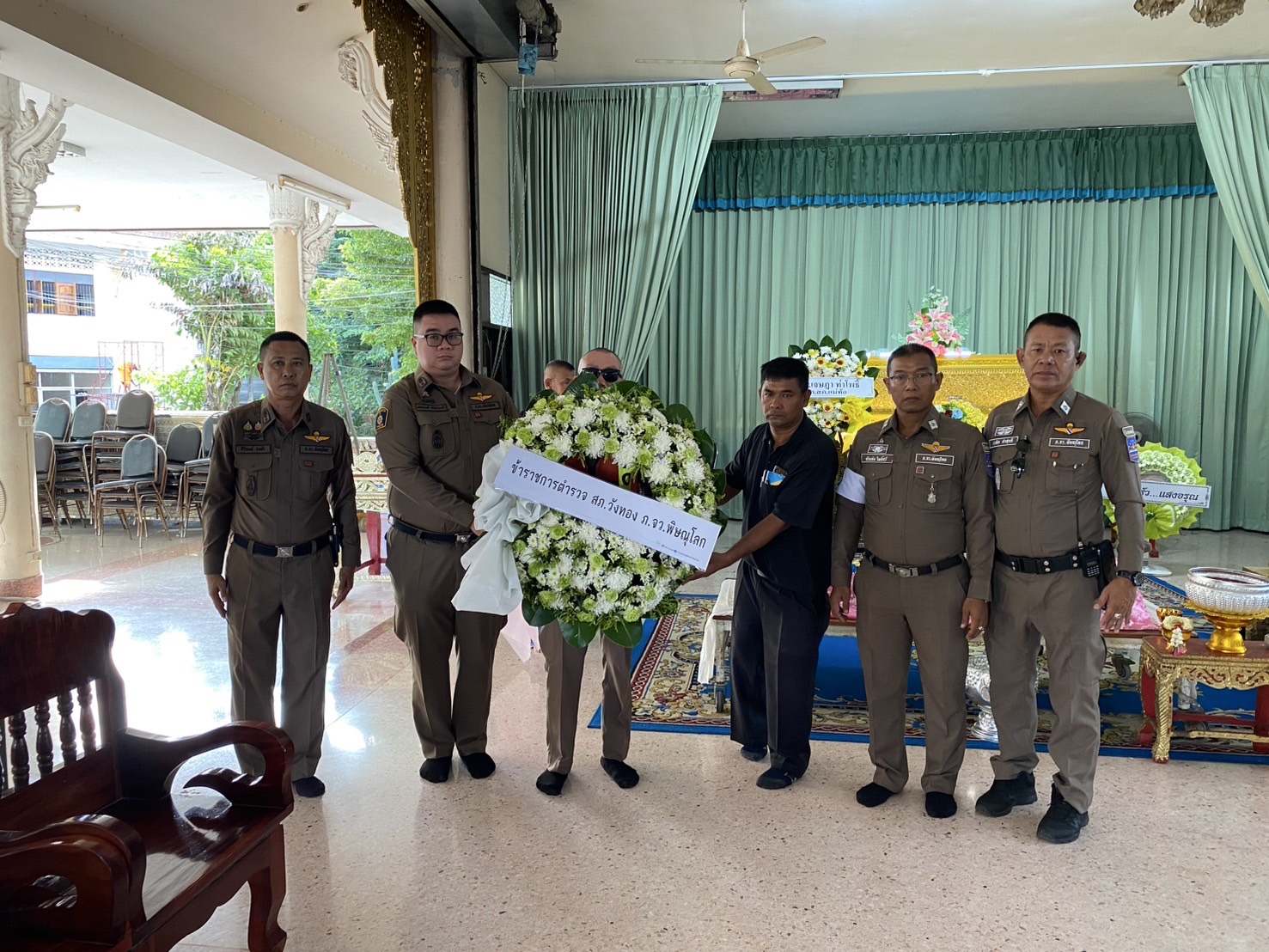 วันนี้ (17 ต.ค. 67) เวลา 16:00 น. พ.ต.อ.มนต์ศักดิ์ แก้วอ่อน ผกก.สภ.วังทอง ได้มอบหมายให้ พ.ต.ท.เอกพงศ์ ปริษาวงศ์ รองผกก.ป.สภ.วังทอง , พ.ต.ท.ศิริพงษ์ ธงห้า สวป.สภ.วังทอง พร้อมข้าราชการตำรวจงานอำนวยการ สภ.วังทอง จัดพวงหรีดเสียแสดงความเสียใจ และร่วมพิธีรดน้ำศพ ด.ต.อดิศร บุญด้วง ผบ.หมู่(ป.) สภ.วังทองฯ