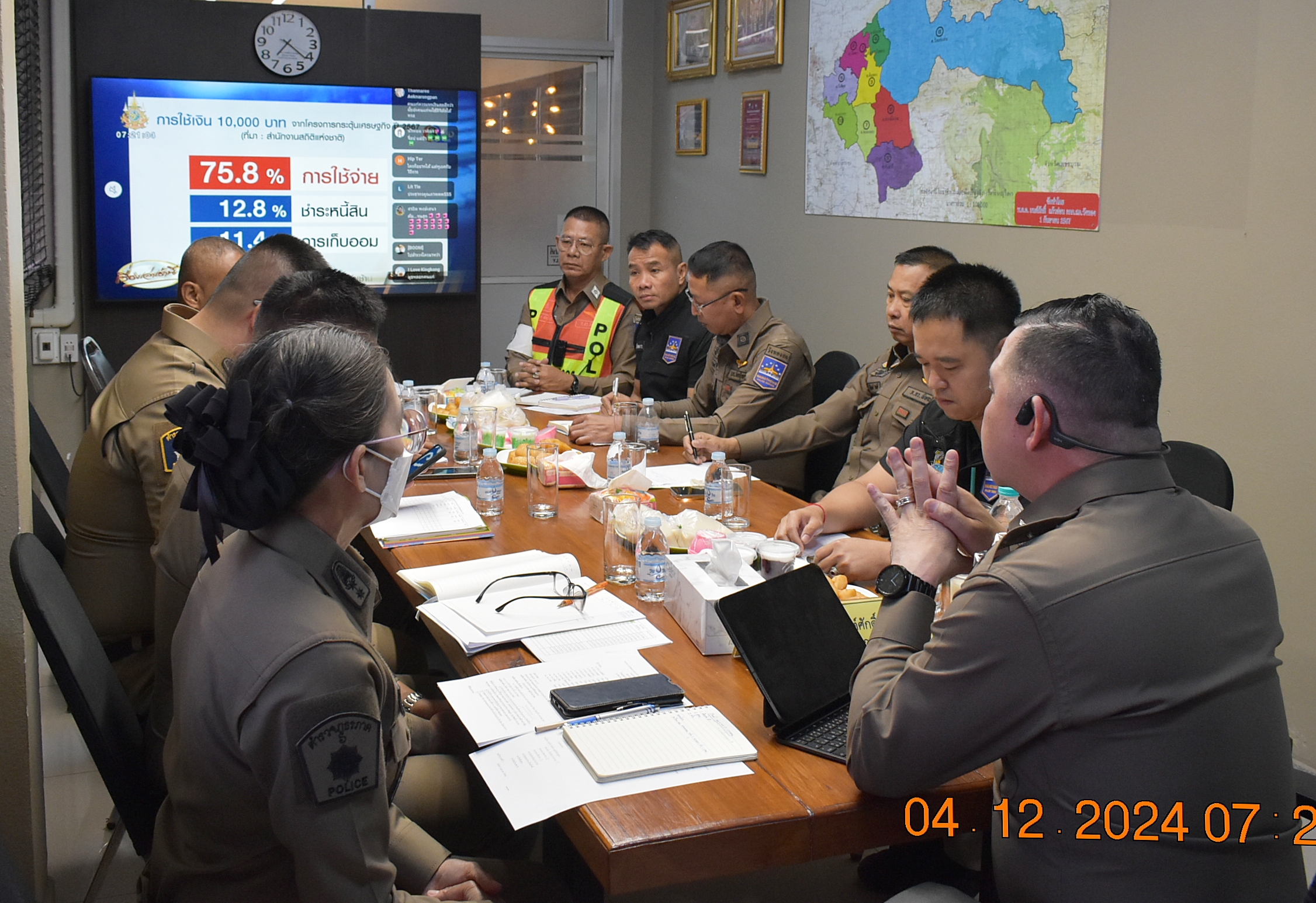 จากนั้น ได้เรียกข้าราชการตำรวจทุกนายเข้าร่วมประชุมบริหาร มอบนโยบาย สภ.วังทอง รวมถึงการรายงานผลการปฏิบัติของแต่ละแผนกงานให้ที่ประชุมทราบ