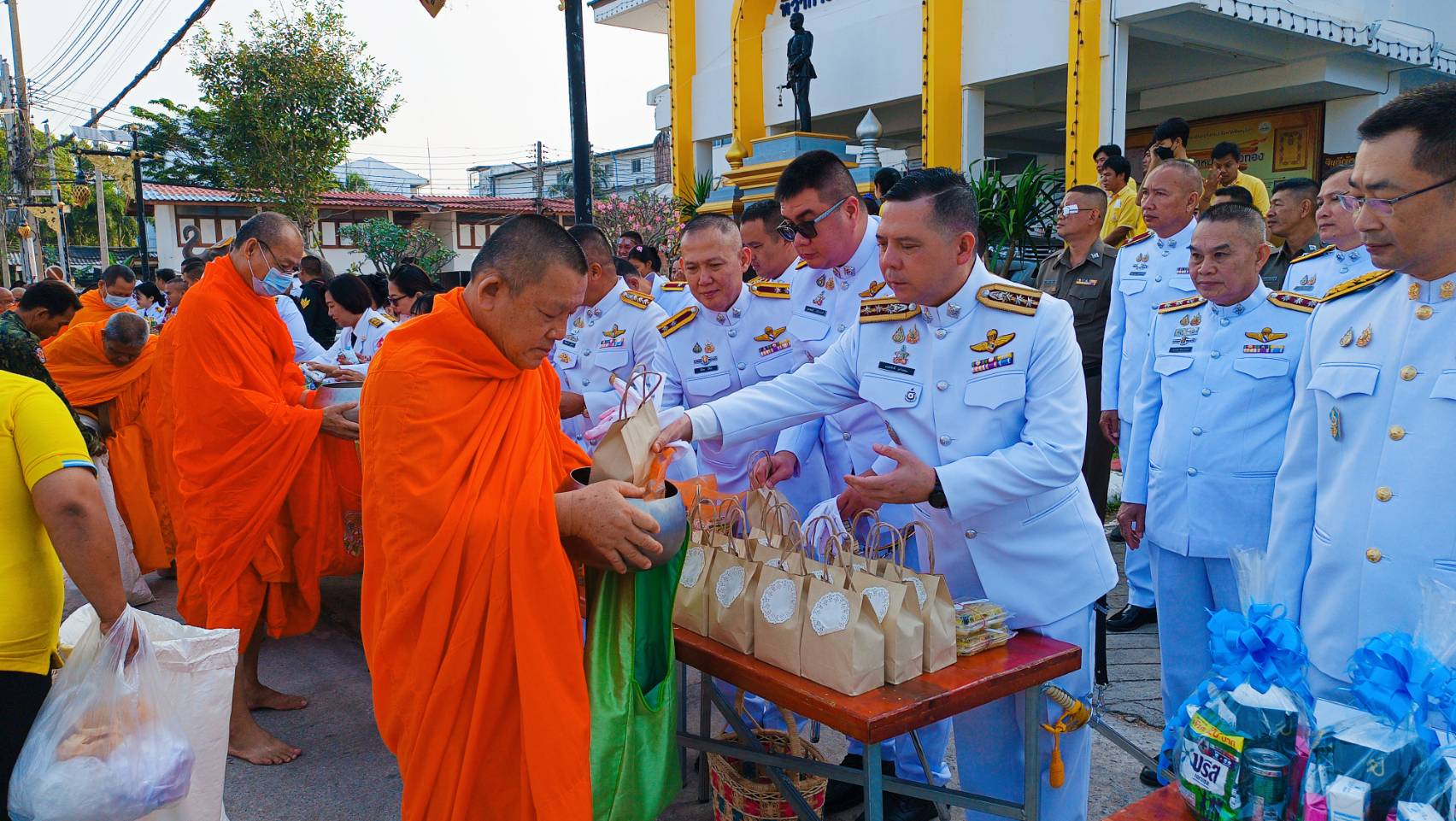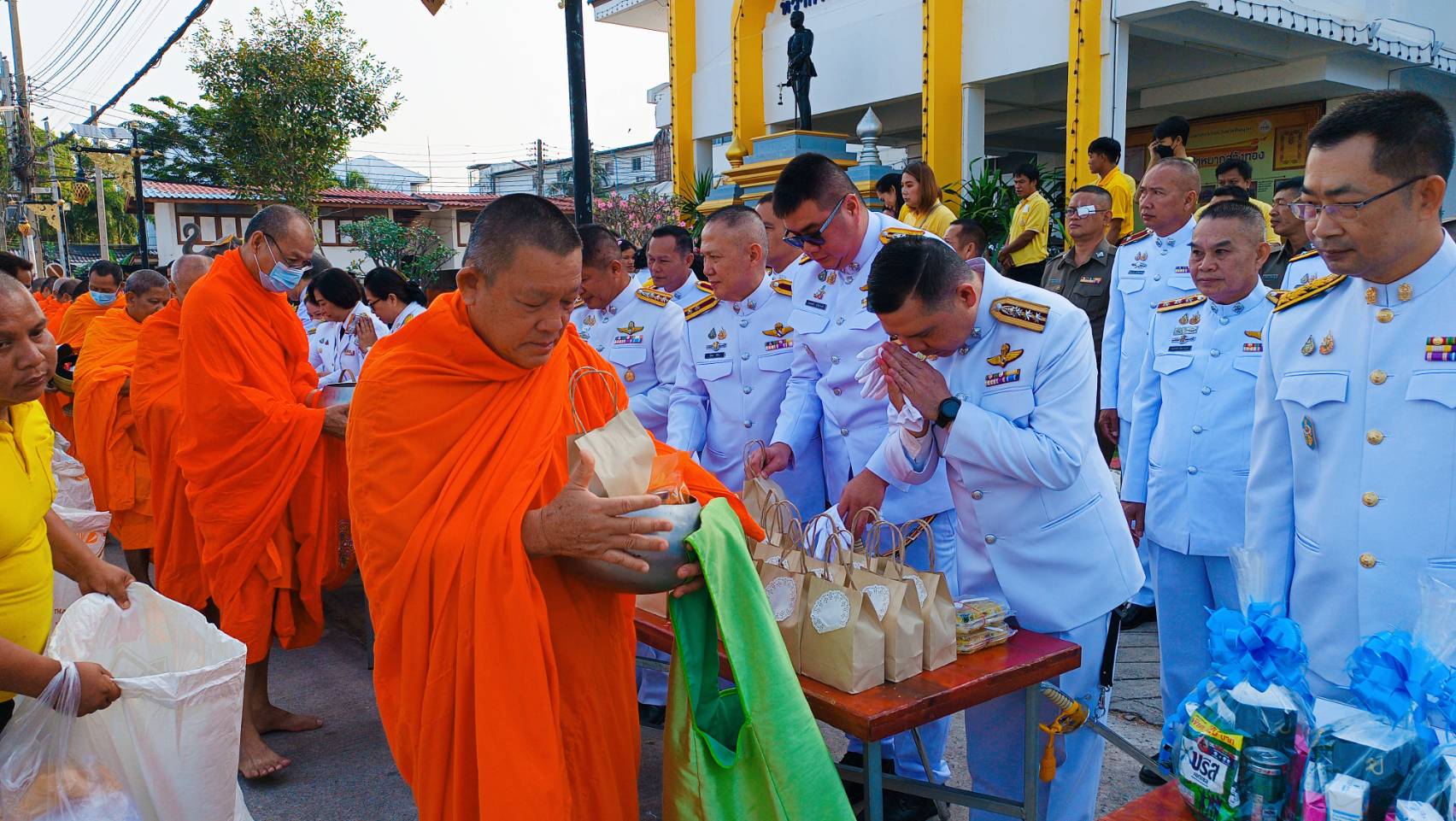 วันนี้ (5 ธ.ค. 67) เวลา 07.00 น. พ.ต.อ.มนต์ศักดิ์ แก้วอ่อน ผกก.สภ.วังทอง พร้อมข้าราชการตำรวจ สภ.วังทอง เข้าร่วมพิธีเจริญพระพุทธมนต์ ทำบุญตักบาตร(ข้าวสารอาหารแห้ง) พระสงฆ์และสามเณร จำนวน ๘๙ รูป ถวายพระราชกุศล และพิธีวางพานพุ่ม เนื่องในวันคล้ายวันพระบรมราชสมภพพระบาทสมเด็จพระบรมชนกาธิเบศร มหาภูมิพลอดุลยเดชมหาราช บรมนาถบพิตร (วันชาติ และวันพ่อแห่งชาติ 5 ธันวาคม 2567)