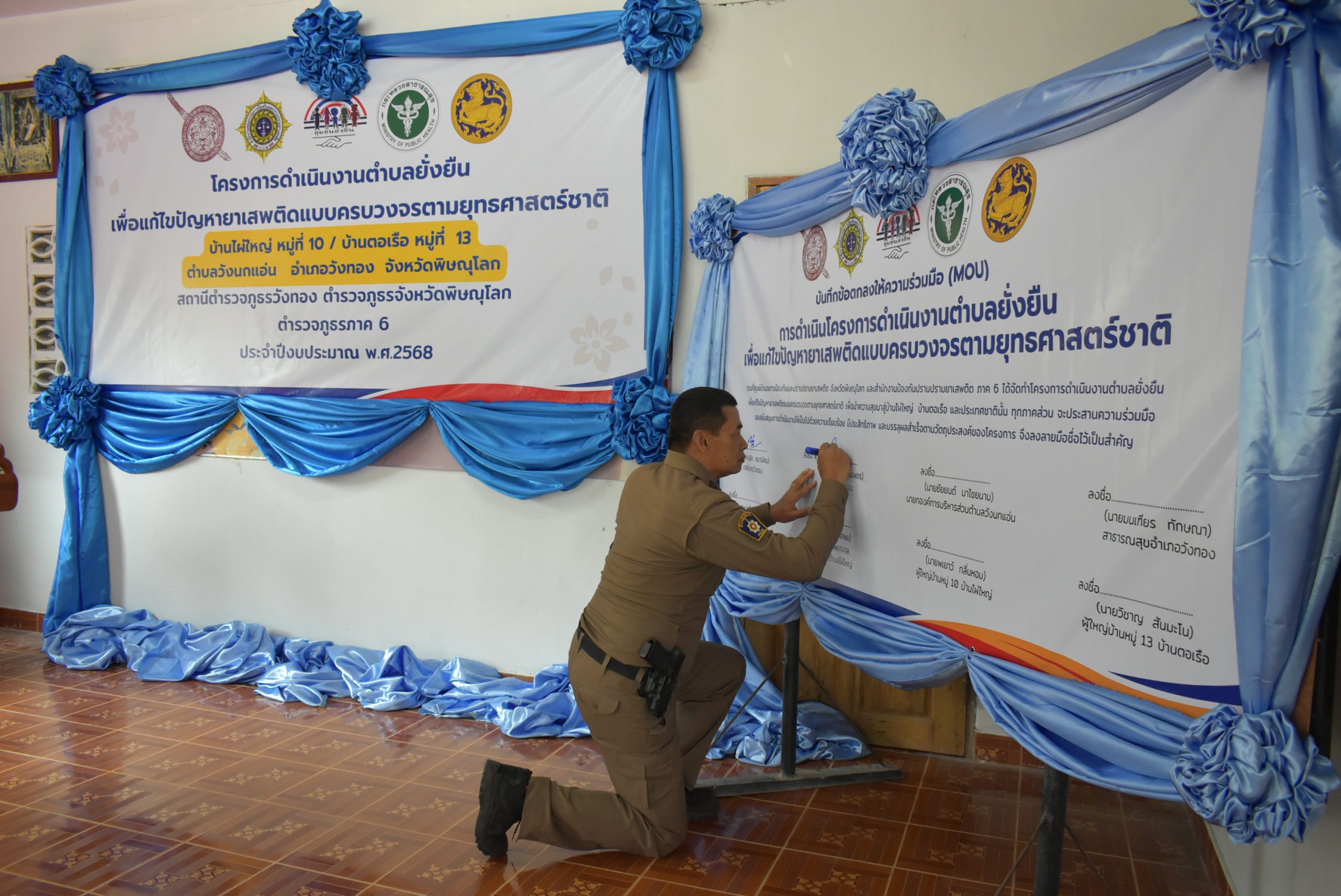 นายชาญชัย คมานิคม นายอำเภอวังทอง เป็นประธานในพิธีเปิด และลงนามบันทึกข้อตกลงความร่วมกัน (MOU) โครงการดำเนินงานตำบลยั่งยืน เพื่อแก้ไขปัญหายาเสพติดแบบครบวงจรตามยุทธศาสตร์ชาติ บ้านไผ่ใหญ่ หมู่ 10 และบ้านตอเรือ หมู่ 13 ต.วังนกแอ่น อ.วังทอง จ.พิษณุโลก
