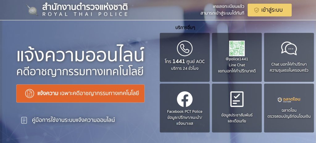 แจ้งความออนไลน์ คดีอาชญากรรมทางเทคโนโลยีงานตรวจสอบประวัติ ด้วยชื่อ ชื่อสกุล <<< คลิก